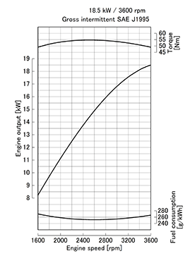 | Rated output / speed*1 | kW (HP) / rpm | 18.5 (24.8) / 3600 |