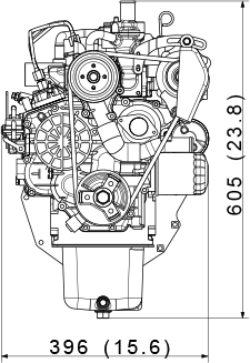 | (without aftertreatment unit) | mm (in) | 480 x 396 x 605 (18.9 x 15.6 x 23.8) |