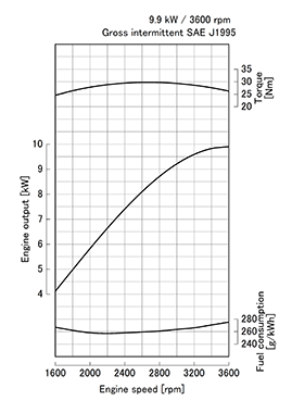 | Rated output / speed*1 | kW (HP) / rpm | 9.9 (13.3) / 3600 |