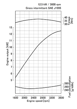 | Rated output / speed*1 | kW (HP) / rpm | 12.5 (16.8) / 3600 |